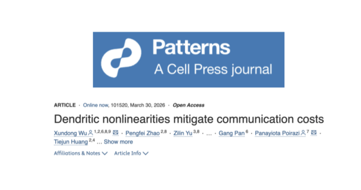 In this collaborative study, led by Xundong Wu, we demonstrated that dendritic nonlinearities increased the efficiency of artificial neural networks by reducing communication costs.